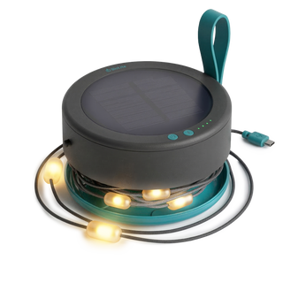 Rechargeable headlamps, solar lights, lanterns, string lights.