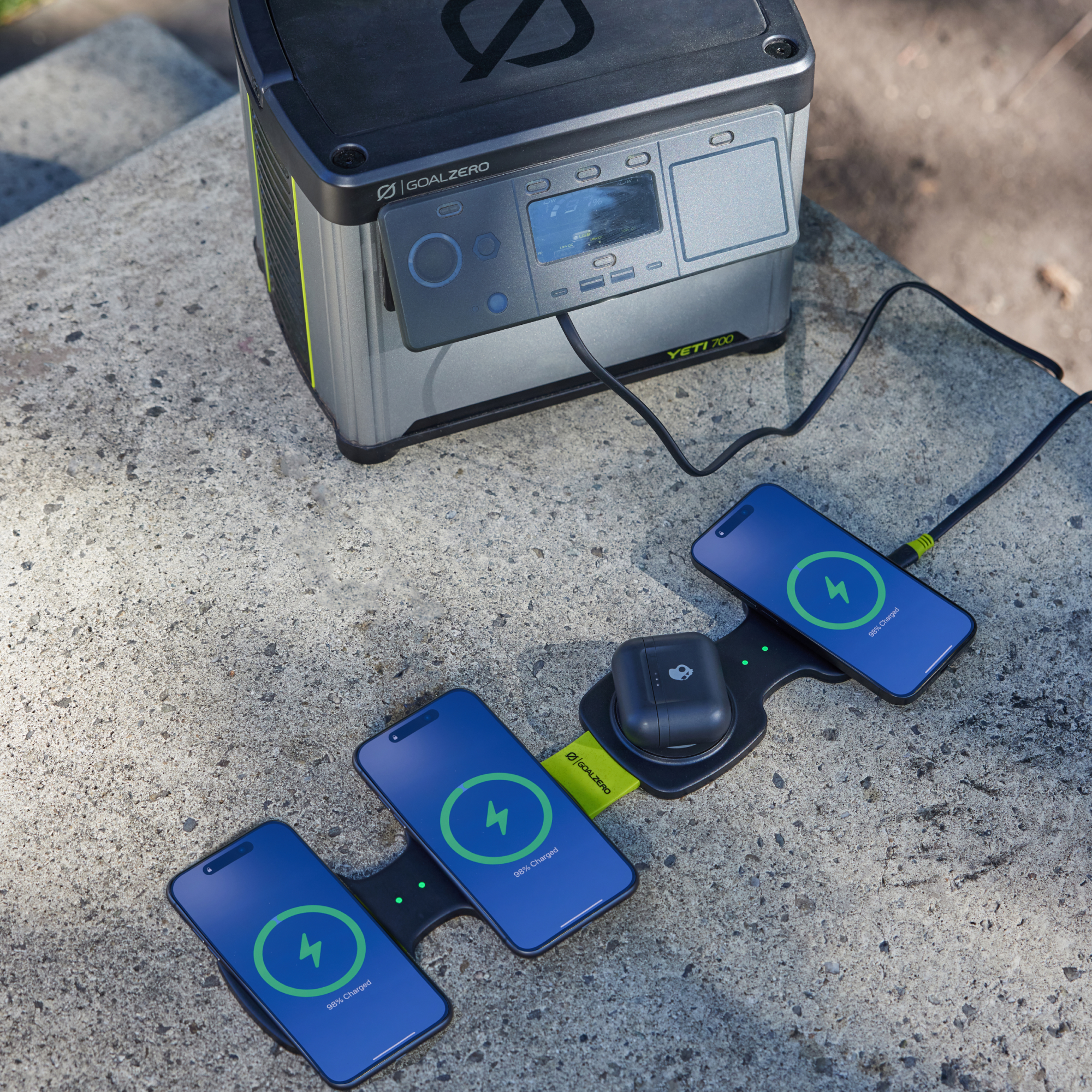 Plug the Basecamp into an outlet or power station and charge 4 devices at the same time. It’s perfect for camping trips with friends and families with lots of phones to charge.