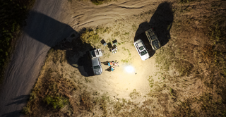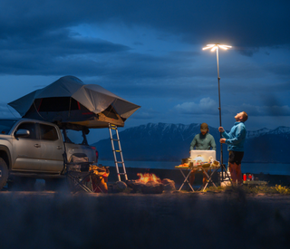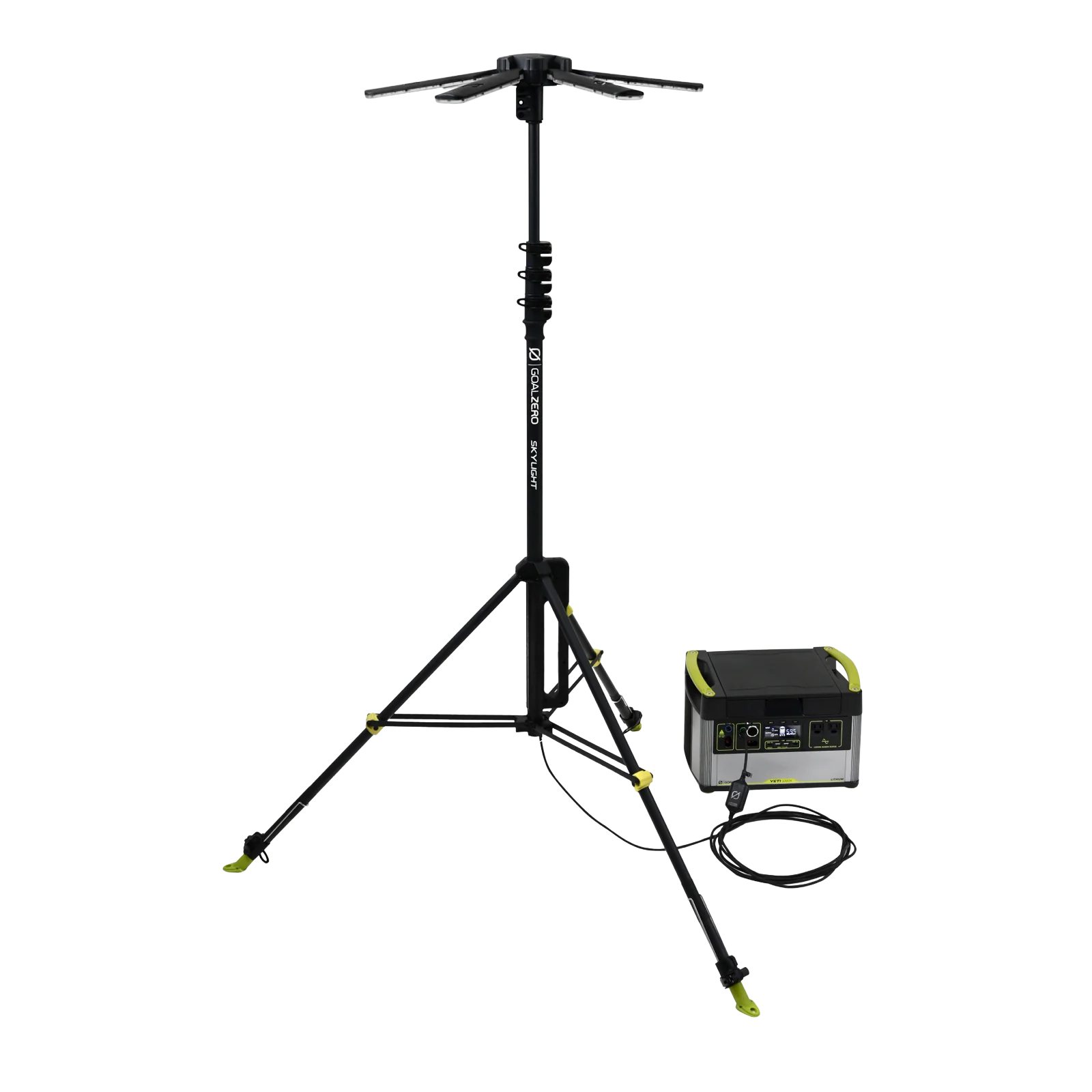 The Skylight is designed for outdoor use and is water resistant. You can use it at a campsite, jobsite, or in your backyard—just find a flat surface to set it up on.